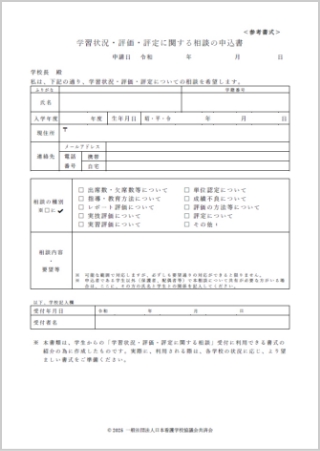 これらの書式は「看護師等養成施設のための対応ハンドブック」の出版にあたり、著者 蒔田覚先生と編集協力者 奥田三奈先生のご厚意により、本ウェブページ上で公開しています。ご自由にダウンロードし、各自の責任でお使いください。