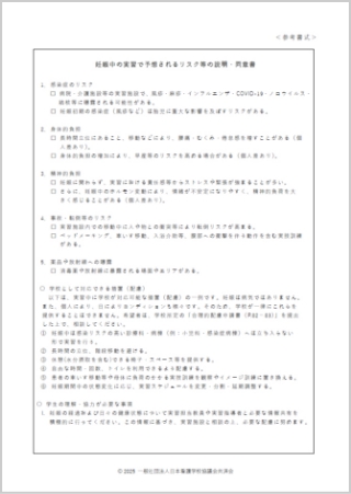 妊娠中の実習で予想されるリスク等の説明・同意書