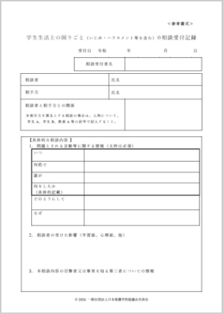 学生生活上の困りごと(いじめ・ハラスメント等を含む)の相談受付記録